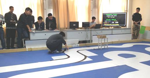 1月24日,2015年大连理工大学创新实验学院智能车竞赛在研究生教育大楼804房间举行,来自全校各院系的39名学生组成了13 支参赛队伍参加了飞思卡尔电磁、光电平衡、摄像头三个组别的智能车竞赛。这些学生在期末考试结束后就一直待在实验室,放弃寒假,持续投入精力提升其模型车的稳定性和策略,本次竞赛旨在对大连理工大学智能车团队的新队员们进行考核,让新队员们熟悉智能车竞赛内容以及流程,提升自身的软硬件技能,从而能够更好的投入到智能车下一阶段的任务中去。本次竞赛由创新实验学院副院长吴振宇副教授主持、并由前几届智能车的参赛老队员们担任裁判,冯林院长到现场观摩和指导,东软信息学院的部分老师也到现场交流和学习。