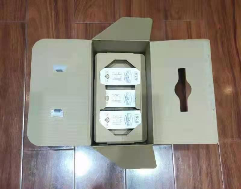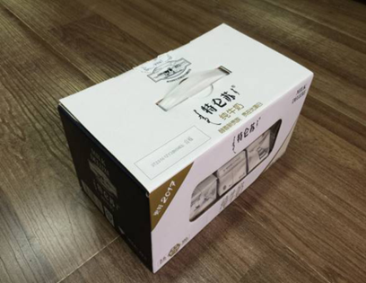 图2.内置横卧3盒250ml特仑苏牛奶及下层固定纸板的箱体情况