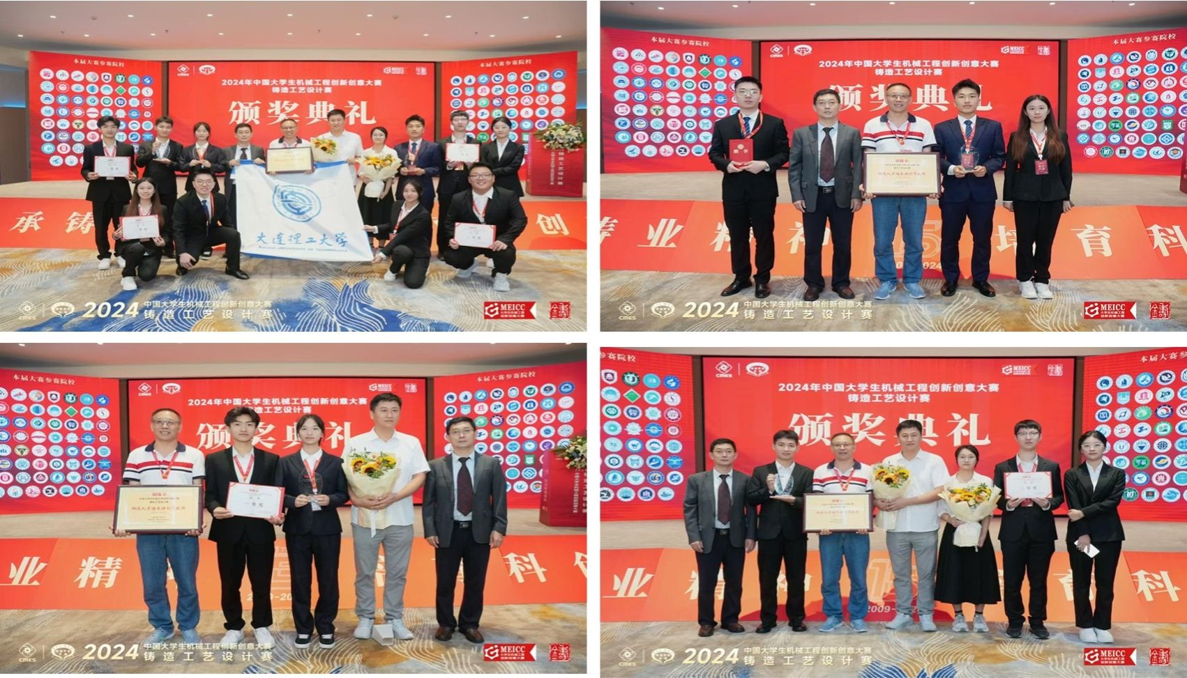 7月30日至8月2日,由中国机械工程学会主办的中国大学生机械工程创新创意大赛——第十五届铸造工艺设计赛决赛在大连举行。经过终评作品答辩、铸造知识竞赛两个环节,我校参赛的2支本科生队伍获得一等奖(最高奖)、1支本科生队伍获得二等奖,8支本科生队伍获得三等奖,1支研究生队伍获得三等奖。其中徐东信代表队在总决赛初评、总决赛终评中双双获得第一,并获得“最佳团队人气奖”第一名。我校还荣获2009-2024“铸造人才培养特别贡献奖”。