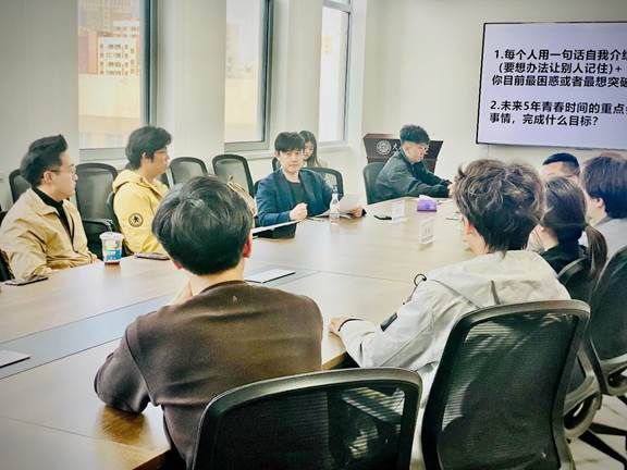 讲座前,董科含在创新创业学院 402 会议室开展了圆桌会议,与学生互动,就创业想法给予针对性指导。