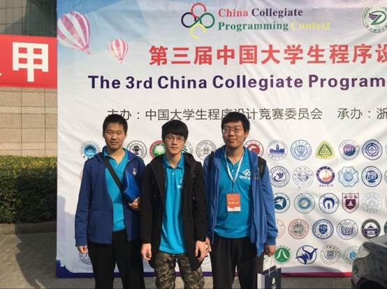 与国际大学生程序设计竞赛青岛站同一天举行的中国大学生程序设计竞赛杭州站于2017年11月4日至5日在浙江理工大学如期举行,本次大赛共有清华大学,复旦大学,上海交通大学,浙江大学,南京大学,大连理工大学等全国百余所重点高校派出的189支代表队参加。我校派出了由霍晨,周晗,汤昊华三名同学组成的“菜鸡互啄”队参加本次大赛该代表队,最终为我校获得一枚铜牌。