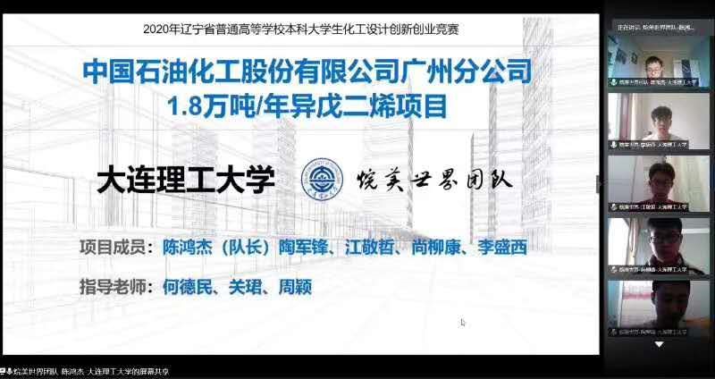 2020年辽宁省普通高等学校本科大学生化工设计创新创业竞赛由辽宁省教育厅、辽宁省财政厅主办,辽宁大学承办,来自省内18所高校的65支队伍提交参赛作品,经过网评初赛,34支队伍进入了决赛。最终评出特等奖4名、一等奖8名及二等奖、三等奖等奖项。,比赛还设立了由学生投票选出的最受学生欢迎作品奖3名。
