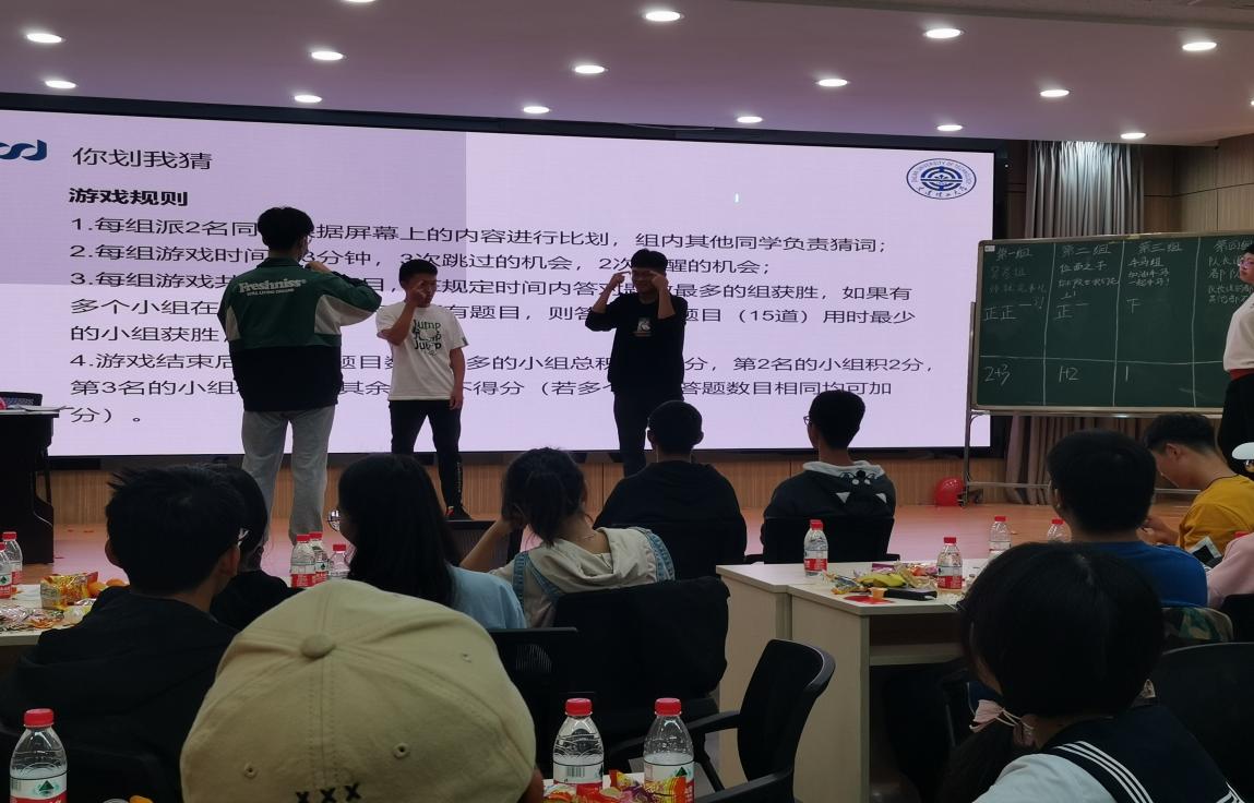 游戏开始之前,每个小组制定了小组名称、口号并推选了队长,这在一定程度上加强了小组成员之间的凝聚力。接着,游戏正式开始,第一个游戏《踩气球》,比赛过程十分激烈,战况焦灼,每名选手都各不相让,展现了当代大学生敢拼敢闯的精神风貌。到了第二关《听歌识曲》环节,我们将经典与流行相结合,既回忆了往昔峥嵘岁月,又感受了流行的青春洋溢。同时,正值国庆,贺老师也登台献唱《滚滚长江东逝水》,歌声嘹亮,底气十足,将联欢会推向了高潮。在游戏的过程中,几位老师与学生面对面交流,了解学生对数模实践班教育教学的想法与意见,同学们也为实践班的发展献计献策。第三关的《你划我猜》现场充满了欢声笑语,同学们丰富的想象力和可爱的肢体动作让人忍俊不禁。最后一关《谁是卧底》,这是一个博弈游戏,考验了大家的随机应变、逻辑推理以及语言表达能力。经过四轮的游戏比拼,也决出了一、二、三等奖。三位老师为获奖同学颁发奖品并合影留念。
