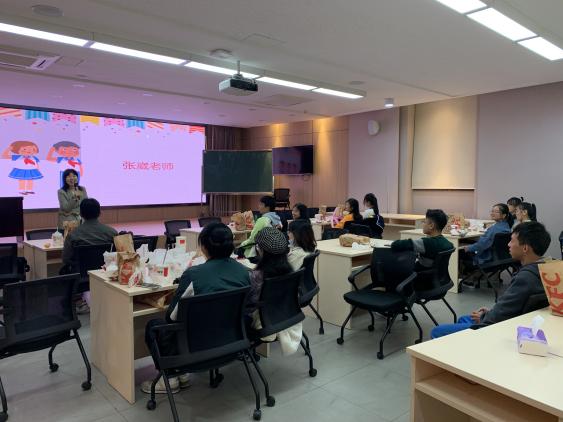 同学都入场后,主持人宣布联欢正式开始,首先是班级指导老师张崴老师发言,张崴老师鼓励大家积极参与实践班的科创活动和各项竞赛,她说实践班一直愿意为大家提供帮助,团队遇到困难和问题都可以找她寻求帮助,发明实践班的大门一直为大家敞开。老师的发言给同学们带来了温暖,赢得同学们的阵阵掌声。接下来是来自发明实践班2016届老学员,保研到大工能动学院的赵良师兄发言。师兄分享了许多自己参加班级科创活动、申请专利和参加比赛、保研的经验,给同学们带来了满满干货。