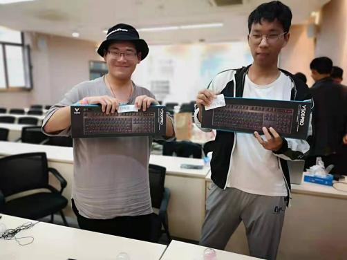奖项设立特等奖、一等奖、二等奖及三等奖。特等奖获得者奖励机械键盘一个,一等奖获得者奖励鼠标G102一个,二等奖获得者奖励拓展坞一个,三等奖获得者奖励u盘一个。大家进行抽奖后,获奖同学进行合影留念。