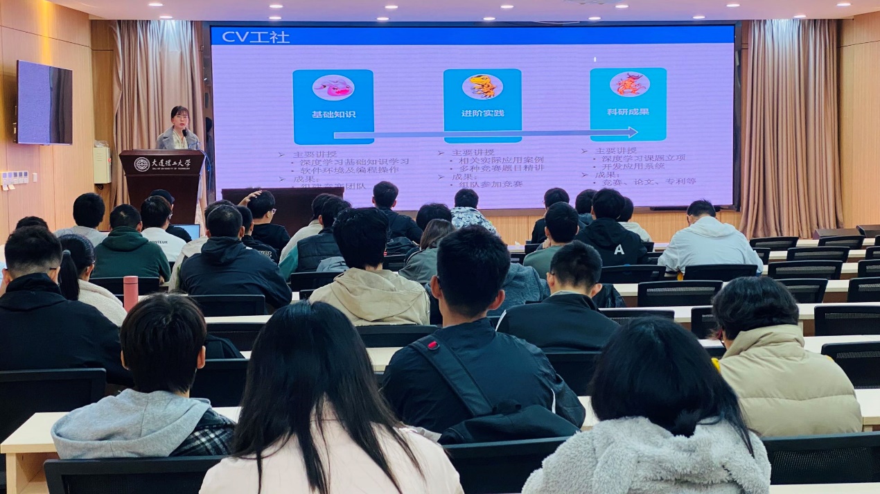 此次见面会孔雨秋老师从计算机视觉原理,应用,前景展开,分别介绍了人计算智能,感知智能,认知智能三个方面,以及深度学习基础理论简介;对CV公社的培养方案进行详细介绍与讲解,从基础知识学习到进阶实践再到科研成果的深度学习路线,为同学们提供清晰明确的学习方向与目标。