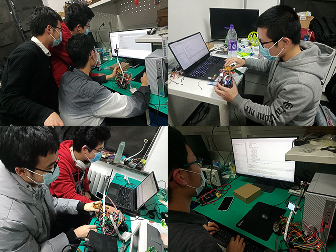 同学们利用课余时间来到实验室,动手实践,和队友一起搭车、调试代码,共同讨论比赛的规则,规划创新方案。各团队成员目标明确,按照计划有条不紊的调车。他们用潜心备赛的实际行动为抗疫加油,传递着无声抗疫的正能量。住校的指导教师吴振宇教授带领实验室班长在遵守疫情防控要求的前提下,尽可能为同学们提供帮助和指导。