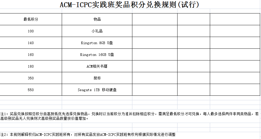 书籍、鼠标、移动硬盘等,具体查询《ACM-ICPC实践班奖品积分兑换规则》